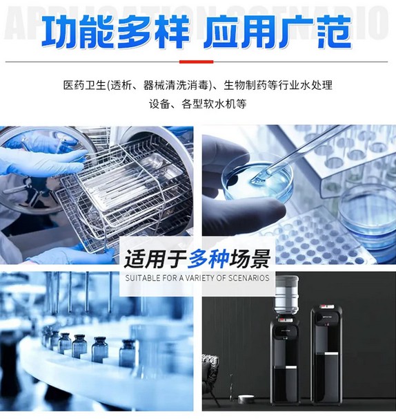 最常見的水處理技術(shù)是離子交換技術(shù)。高級水質(zhì)凈化器所有的離子交換樹脂,通常為磺酸鹽型鈉離子交換樹脂。待處理的原水通過樹脂后,可將水內(nèi)的有害雜質(zhì)離子(主要為鈣Ca,鎂Mg離子)吸附于樹脂內(nèi),達到凈化水質(zhì)的目的。隨著水處理量的增加,吸附的雜質(zhì)越來越多,樹脂的吸附能力會逐漸降低,而要清除樹脂吸附的雜質(zhì)(主要為鈣Ca,鎂Mg離子),就需要用鈉離子(Na),通過反沖洗的方法,通過離子交換而把樹脂吸附的雜質(zhì)離子(主要為鈣Ca,鎂Mg離子),置換出來,從而恢復離子交換樹脂的吸附能力,這個過程也叫離子交換樹脂再生。