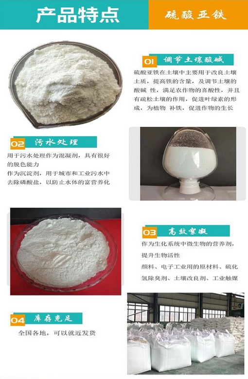· 農(nóng)業(yè):作為植物營(yíng)養(yǎng)劑,為植物提供鐵元素,促進(jìn)植物的生長(zhǎng)和發(fā)育。同時(shí),還可以調(diào)節(jié)土壤的酸堿度,改善土壤環(huán)境。